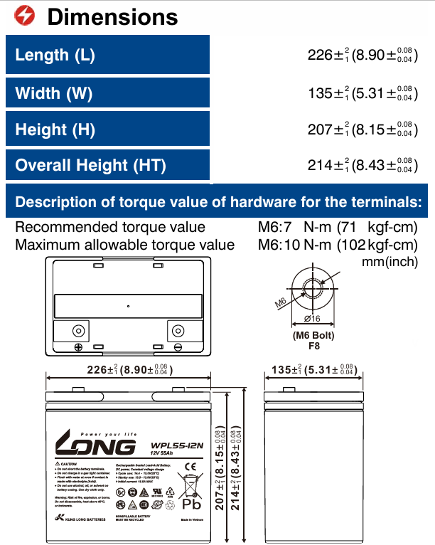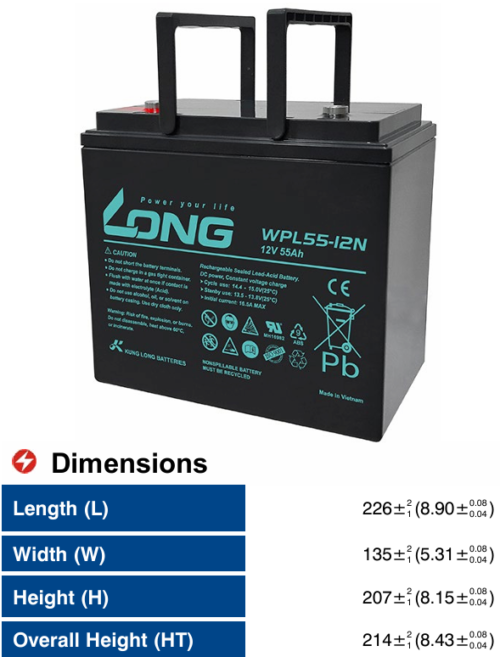 Datasheet / Catalogue>> WPL55-12 | WPL55-12N User Manual – Tài liệu kỹ thuật KungLong Battery eCatalogue MSDS (Material Safety Data Sheet): English | Vietnamese |